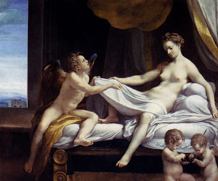 1525-Correggio (1489-1534). The School of Love, 1525. National Gallery London.