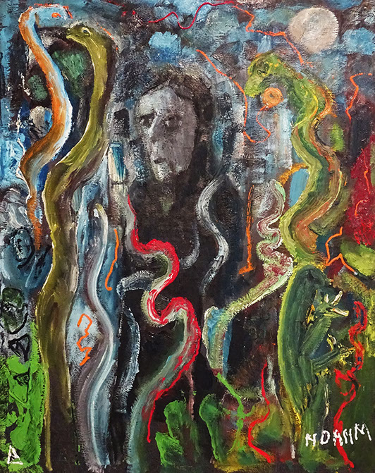 Helen Dahm (1878-1968). Drei Köpfe, Adam, Eva und die Schlange, ohne Datum. Kunstsammlung Stadt Zürich.