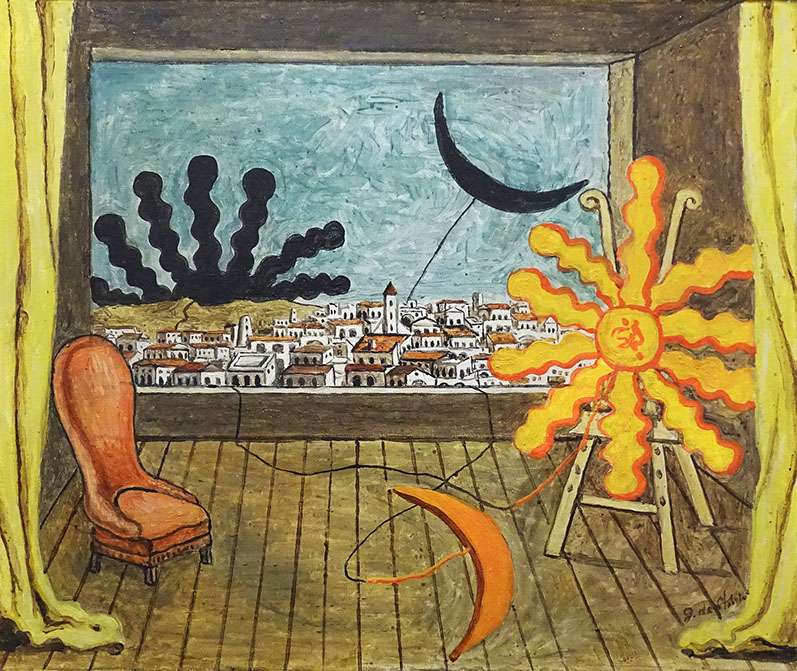 1916-Giorgio de Chirico (1888-1978). Metaphysisches Interieur mit grosser Fabrik, 1916. Staatsgalerie Stuttgart.