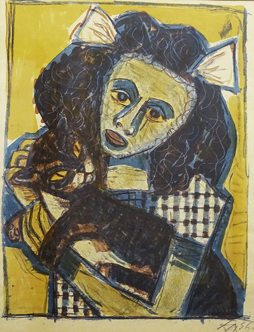 1956-Otto Dix (1891-1969). Mädchen mit Schleife und Katze II, 1956. Sammlung Karl Lang Büsingen.