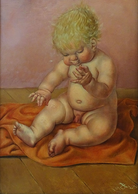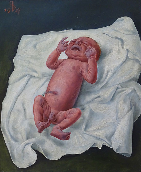 1927-Otto Dix (1891-1969). Neugeborener mit Nabelschnur auf Tuch (Ursus), 1927. Albertinum Dresden.