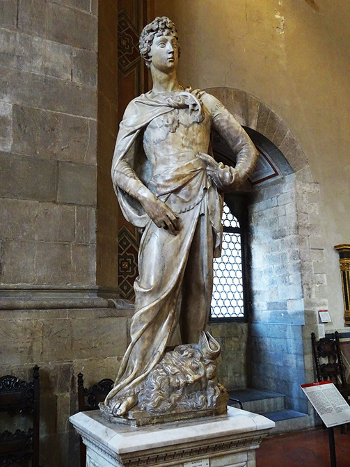 1408-Donatello (1386-1466). David, 1408. Marmor. Museo del Bargello, Firenze.