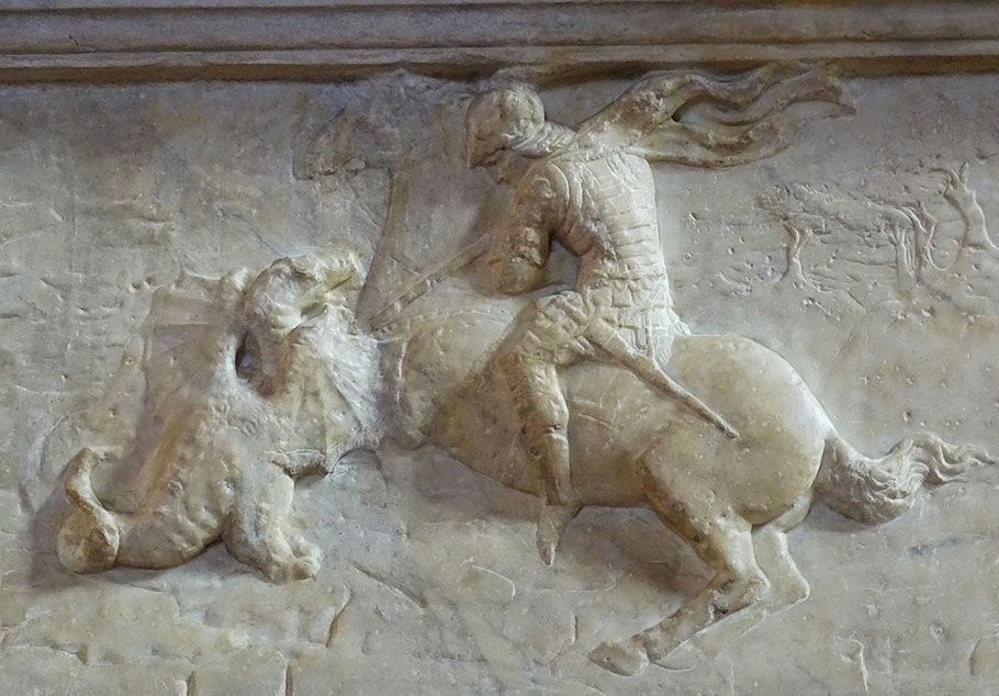 1416-Donatello (1386-1466). San Giorgio che uccide il drago e libera la principessa, 1416-17. Detail. Bargello, Firenze.