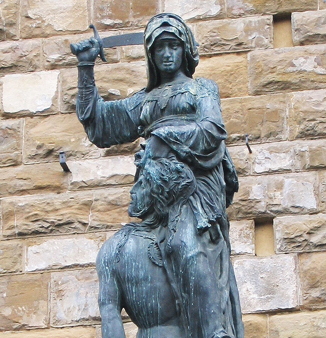 1453-Donatello (1386-1466). Judith und Holofernes, 1453-57. Kopie vor dem Palazzo Vecchio, Florenz. WikiCommons.