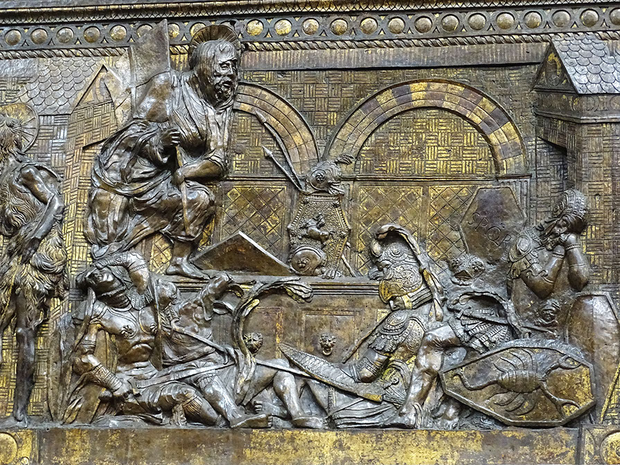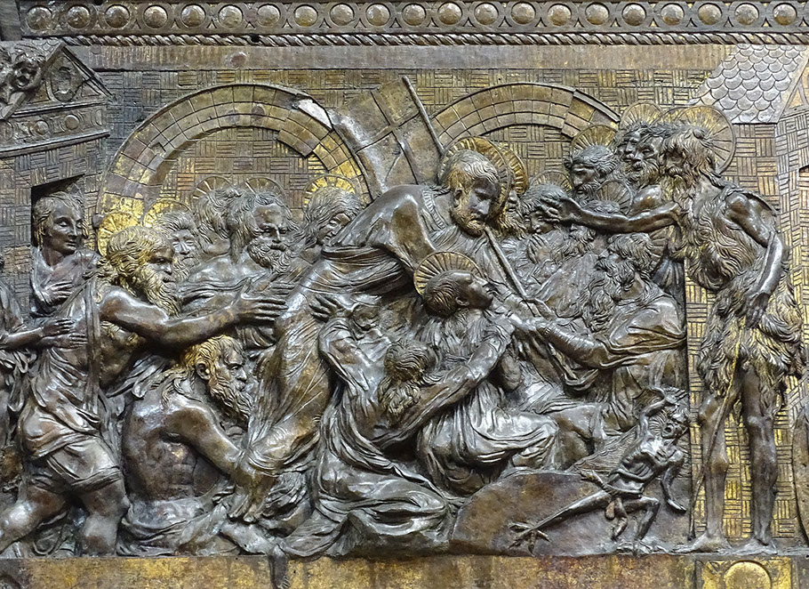 1460-Donatello (1386-1466). Bronzekanzel in der Basilica di San Lorenzo, Florenz. Detail.