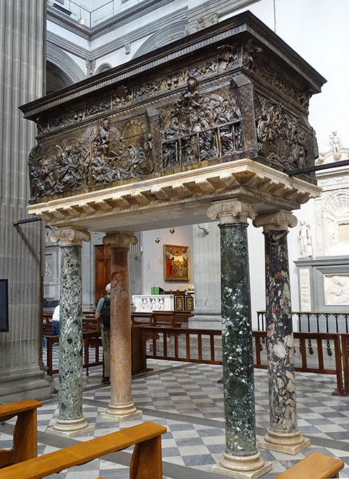 1460-Donatello (1386-1466). Bronzekanzel in der Basilica di San Lorenzo, Florenz.