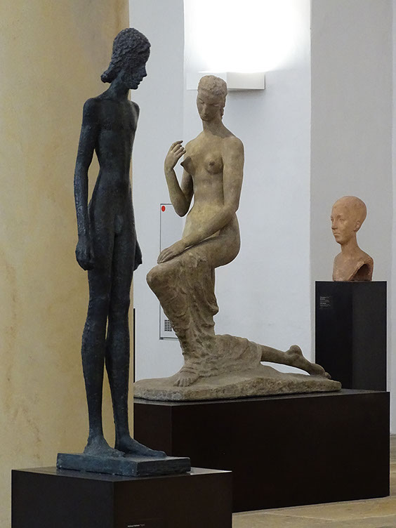 Helmut Heinze (1932). Knabenakt stehend, 1976-77. Wilhelm Lehmbruck (1881-1919). Kniende, 1911. Steinguss.