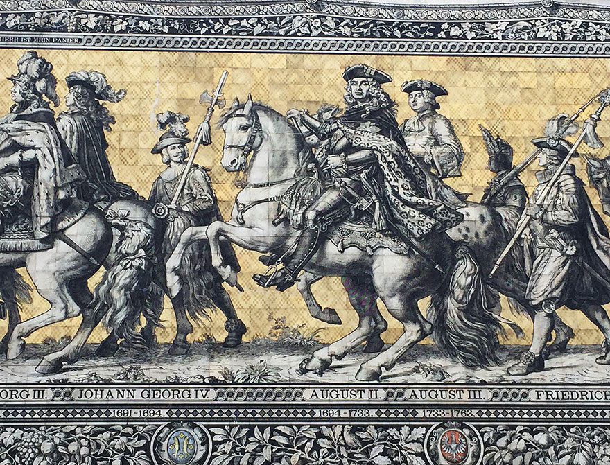 Detail aus dem 100 Meter langen Porzellanbild «Fürstenzug».