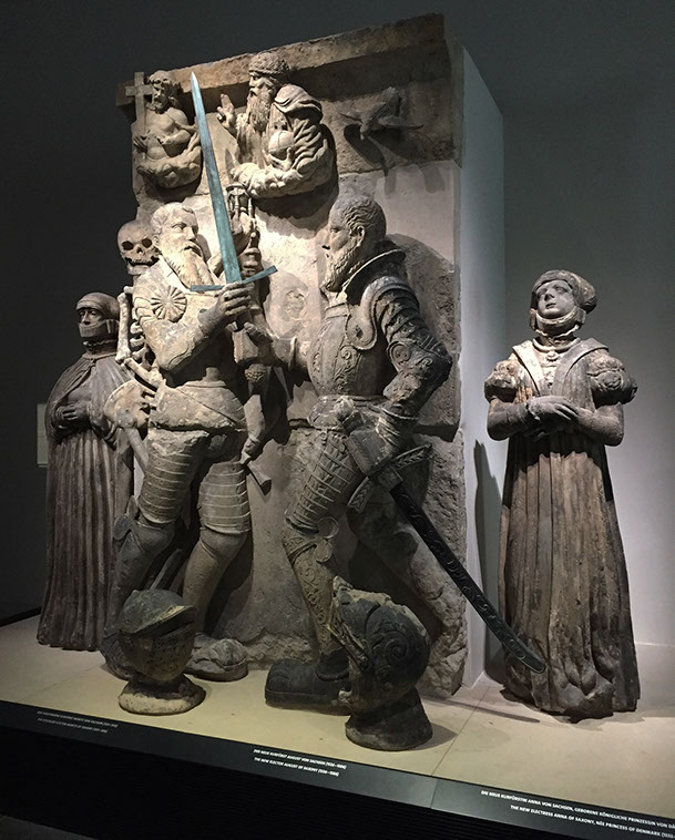 Hans Walther II (1526-1586). Moritzmonument, 1553-55. Kurfürst Moritz übergibt das Schwert an seinen Bruder August.