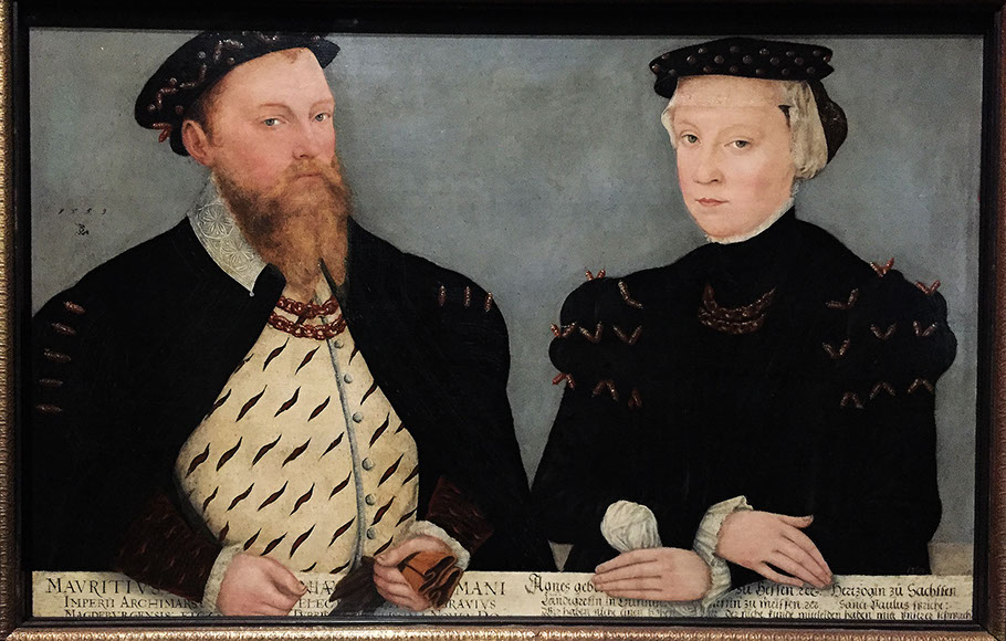 Lucas Cranach d.J. (1515-1586). Kurfürst Moritz (1521-1553) mit Ehefrau Agnes.