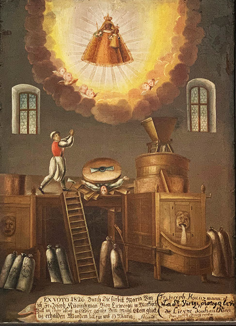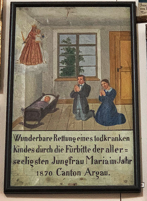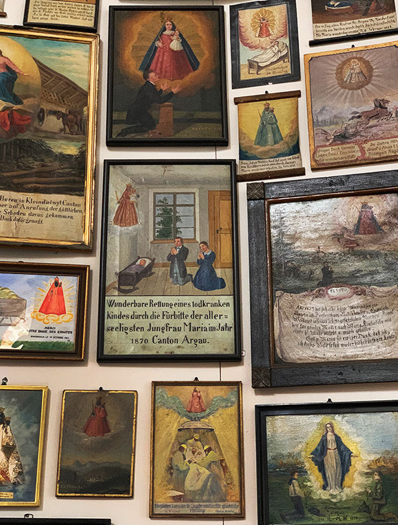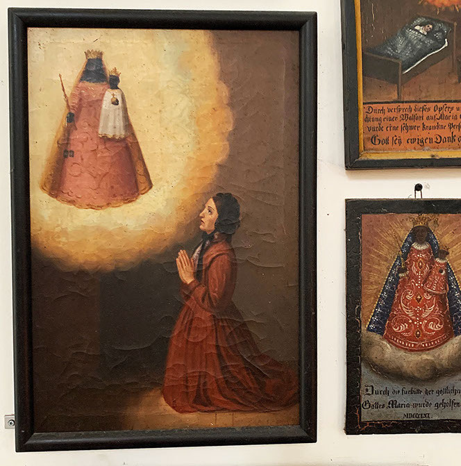Pinwand mit Fürbitten und Danksagungen an die heilige Jungfrau.