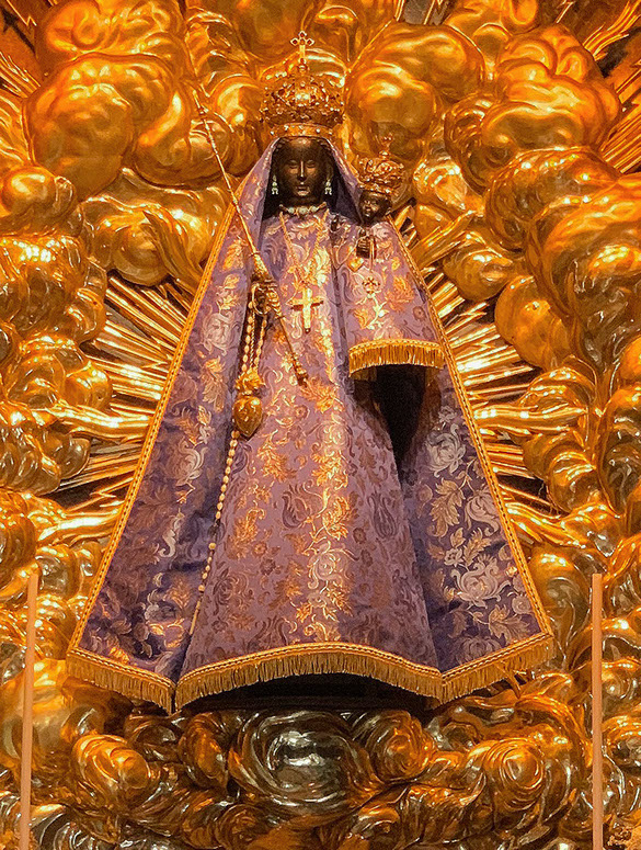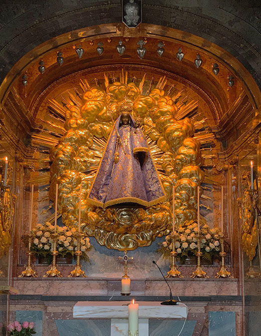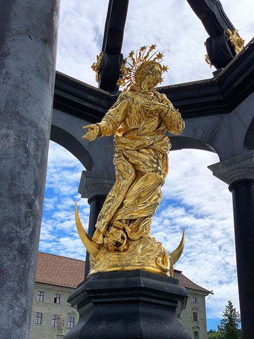 Frauenbrunnen mit der vergoldeten Jungfrau Maria.