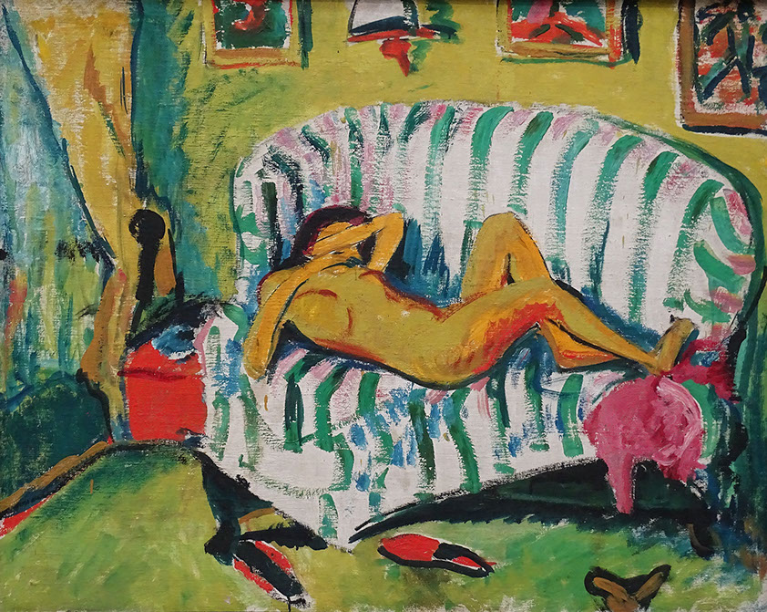 1909-Erich Heckel (1883-1970). Liegendes Mädchen (Akt auf Sofa), 1909. Pinakothek der Moderne München.
