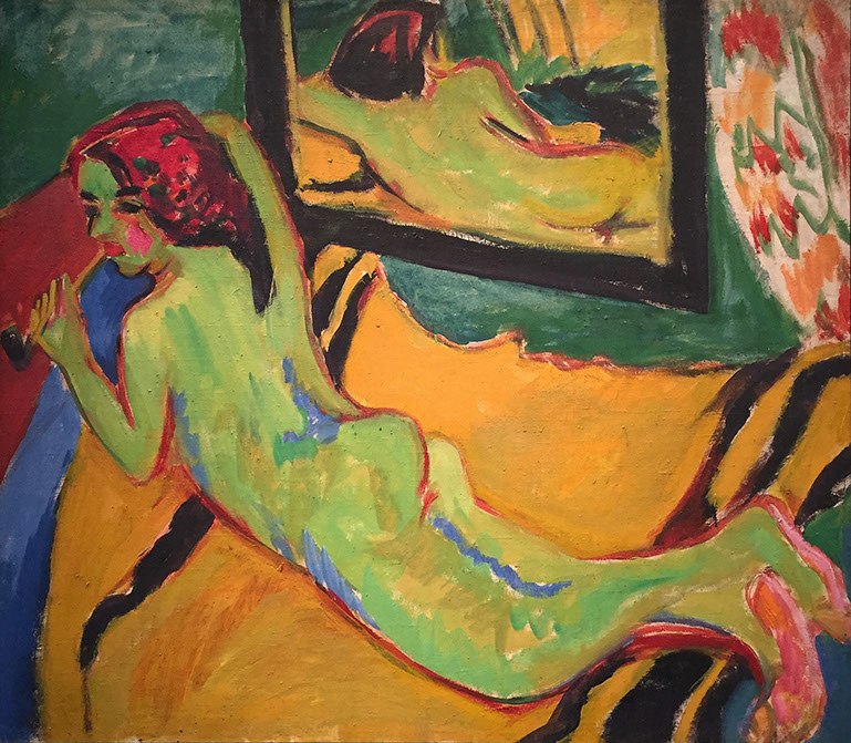 1909-Ernst Ludwig Kirchner (1880-1938). Liegender Akt vor Spiegel, 1909. Brücke Museum Berlin. Ausstellung KH_ZH17.