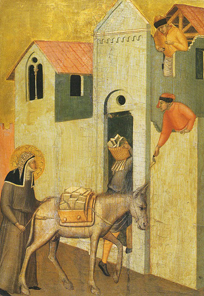 Pietro Lorenzetti (1280-1348). Construction of the Roof of the Church. Detail from the Blessed Humility Altarpiece.