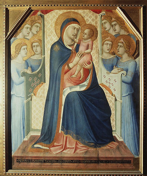 Pietro Lorenzetti (1280-1348). Madonna and Child Enthroned with Eight Angels.
