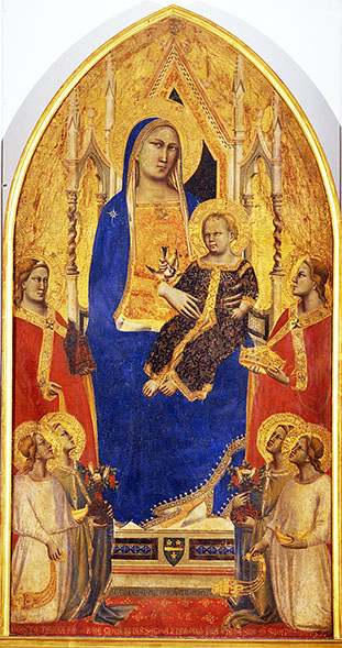 Giotto (1265-1337). Madonna in trono col Bambino, Maesta di Ognisssanti, 1306-1310.