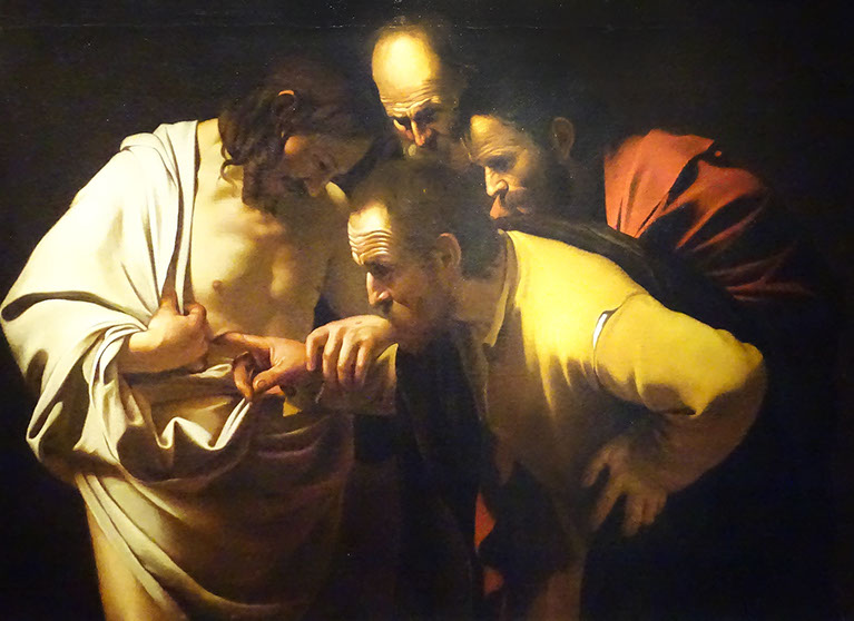 Copia dell'Incredulità di San Tommaso, nach Caravaggio. Unbekannter Künstler. 17. Jht