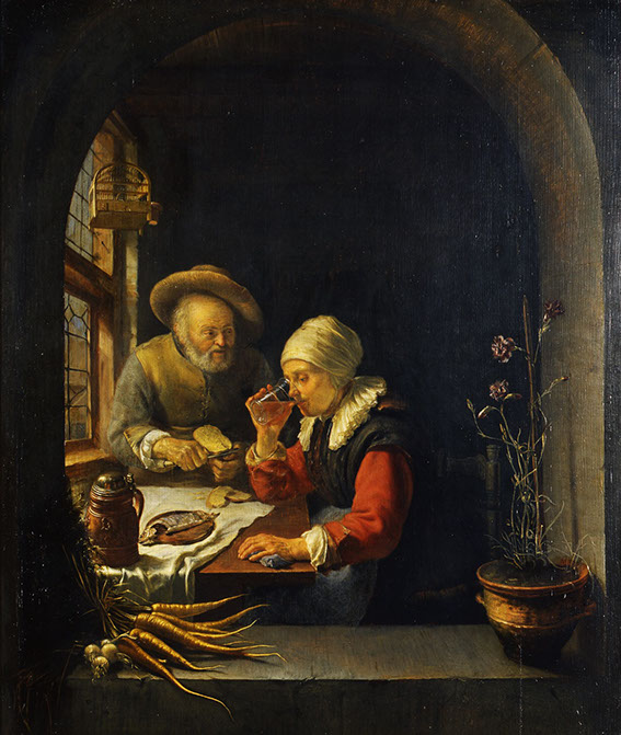 Frans van Mieris il vecchio (1635-1681). Due vecchi a tavola.