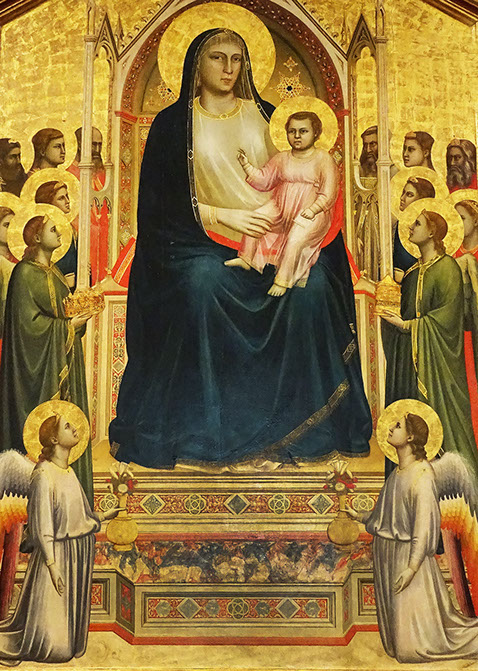 Giotto (1265-1337). Madonna in trono col Bambino, Maesta di Ognisssanti, 1306-1310.