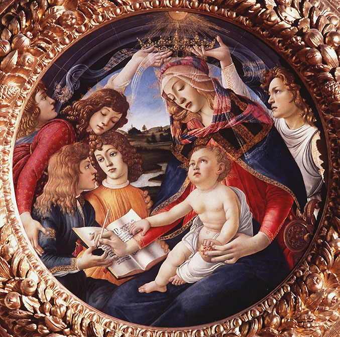 Botticelli (1445-1510). Madonna mit Kind und Engeln.