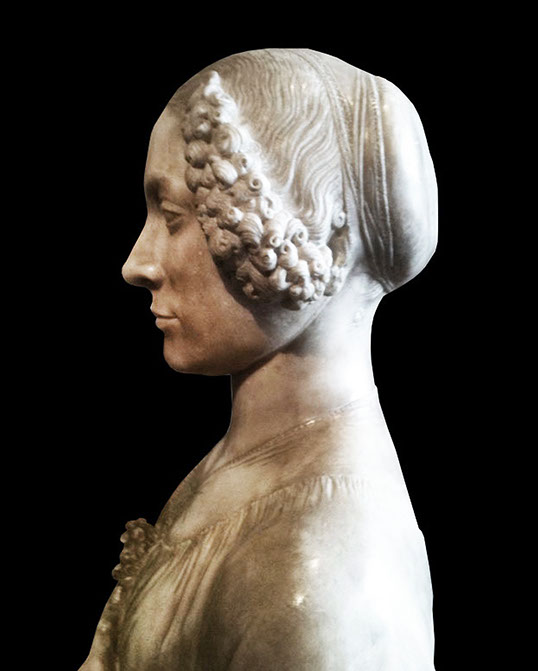 Andrea del Verrocchio (1436-1488). Dame mit Blumenkranz, 1475-80. Bargello, Firenze.