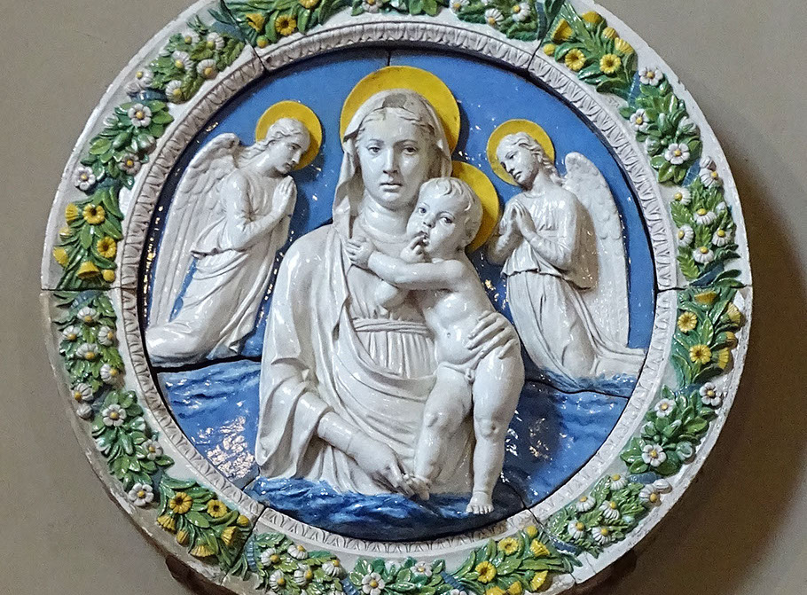 Luca della Robbia (Werkstatt). Madonna col Bambino e angeli, 1475-1480. Bargello, Firenze.
