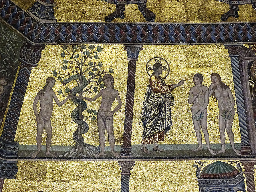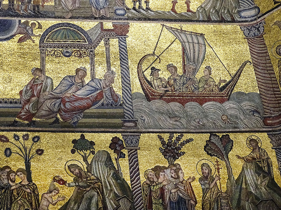 Mosaik mit Genesis und der Geschichte Noahs.
