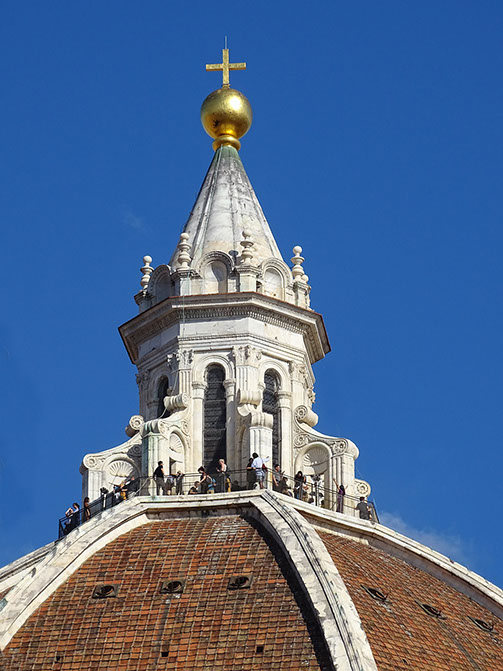Die Marmorlaterne auf der Kuppel. Mit Bronzekugel und Kreuz, von Verrocchio.