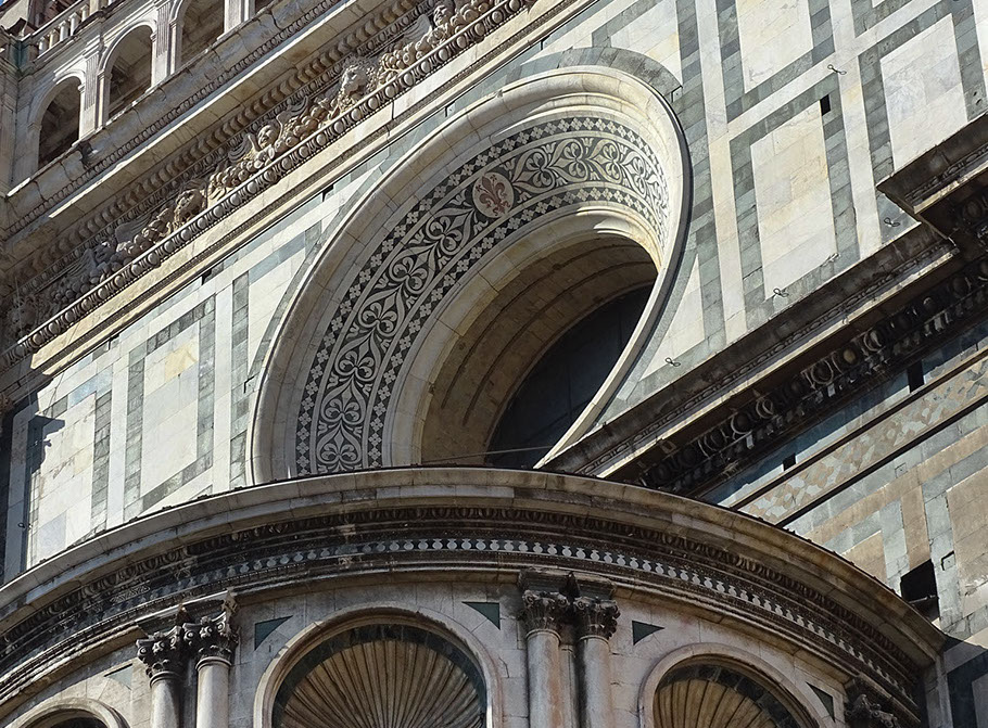 Die mächtige Südfassade mit der dreifarbigen Marmorverkleidung.