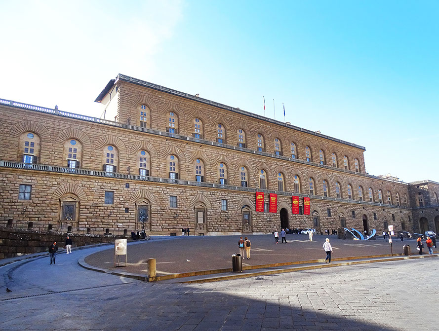 Palazzo Pitti, Front zur Stadt hin. 205 Meter breit.