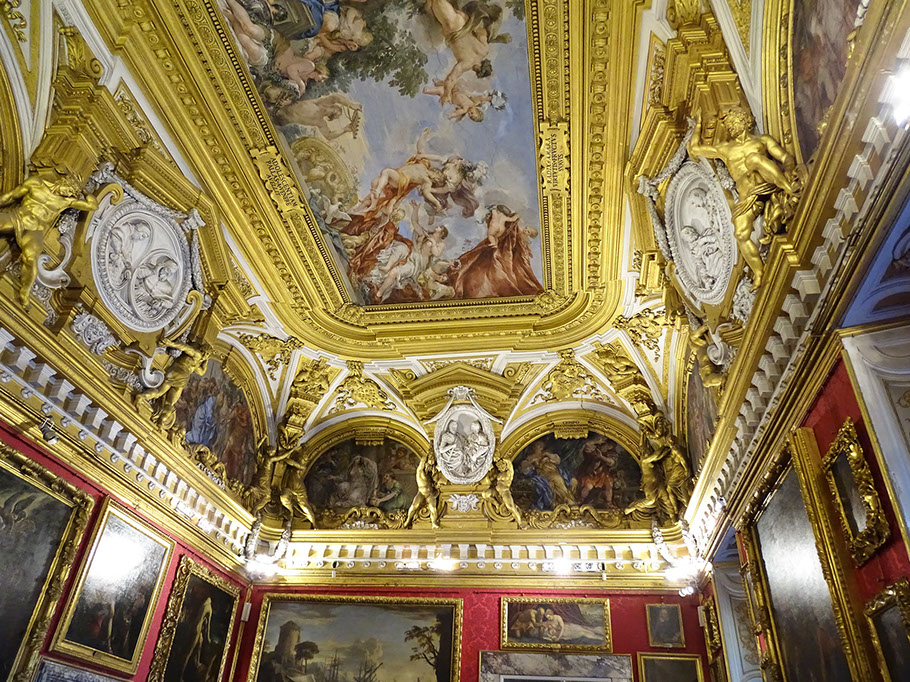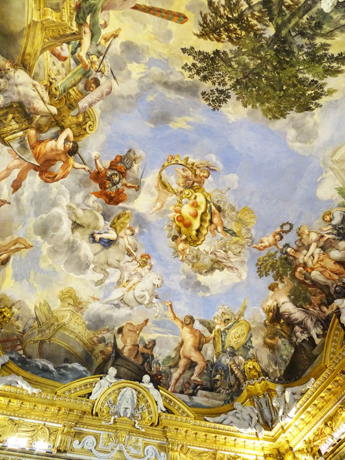 Herkules-Saal. Gehörte zum Wohngemach der Vittoria della Rovere. Gemälde: Herkules am Scheideweg.