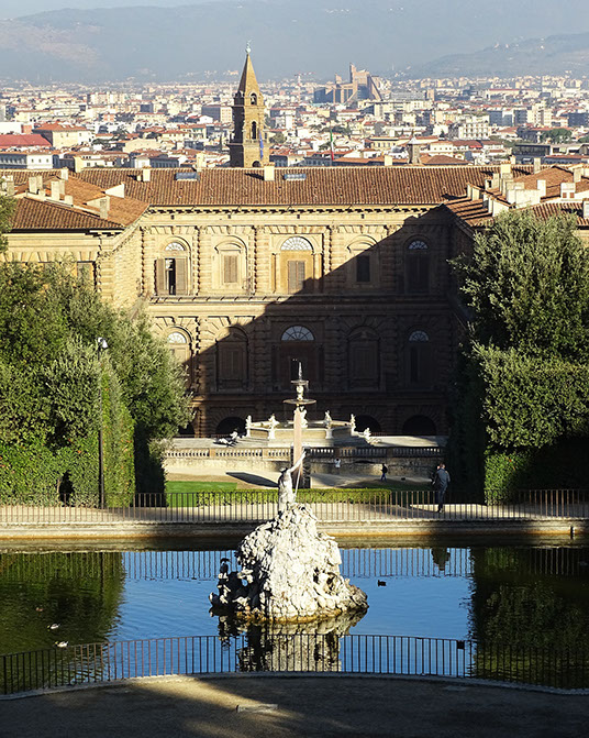 Boboli-Garten, Palazzo und Blick auf Florenz.