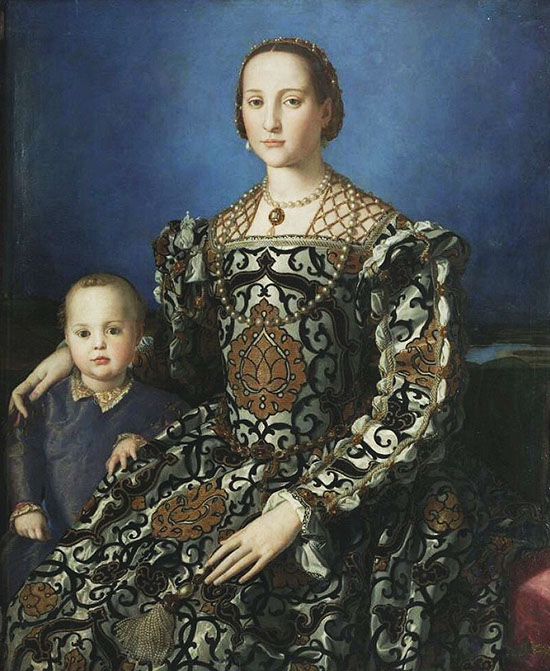 Bronzino (1503-1572). Eleonora von Toledo mit Sohn Giovanni de Medici. Galleria degli Uffizi.