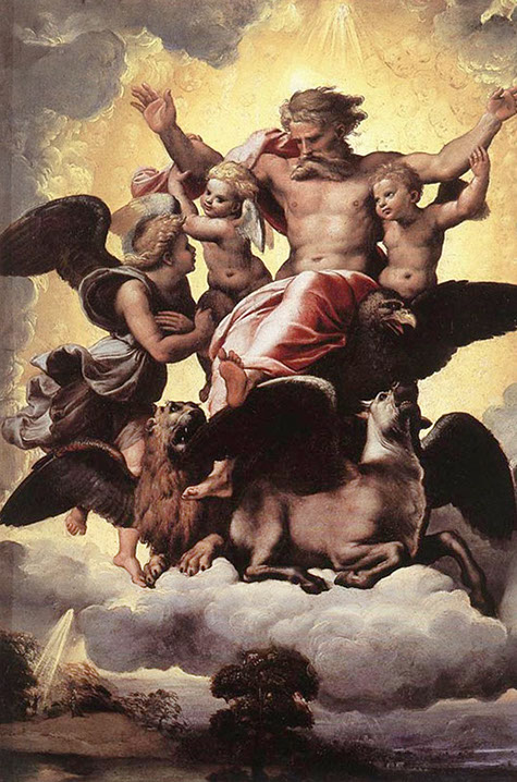 Raffaello (1483-1520). Die Vision des Ezechiel, 1518.