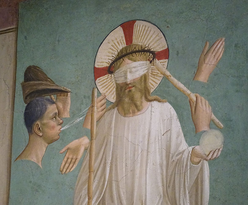 Fra Angelico (1395-1544). Verhöhnung Christi. Mit Jungfrau Maria und dem hl. Dominikus, 1438-1443. Detail.