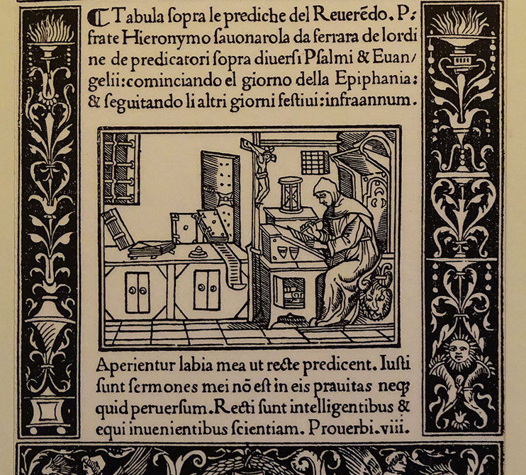 Holzschnitt. Savonarola in seinem Arbeitszimmer.