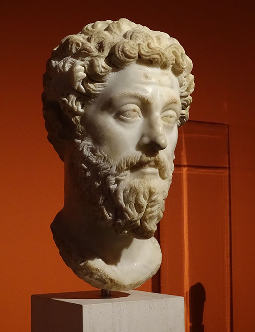 169 n.Chr. Porträt des Kaisers Marc Aurel, Rom 169 n.Chr., Marmor. Liebighaus Frankfurt.