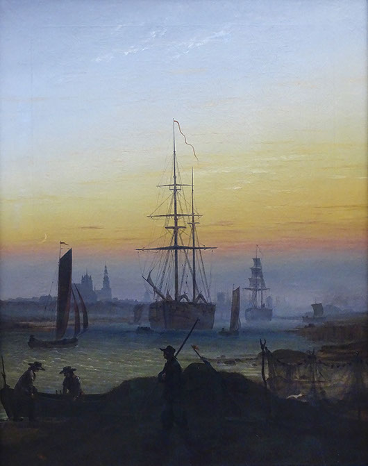1828-Caspar David Friedrich (1774-1840). Schiffe im Hafen am Abend, 1828. Albertinum Dresden.