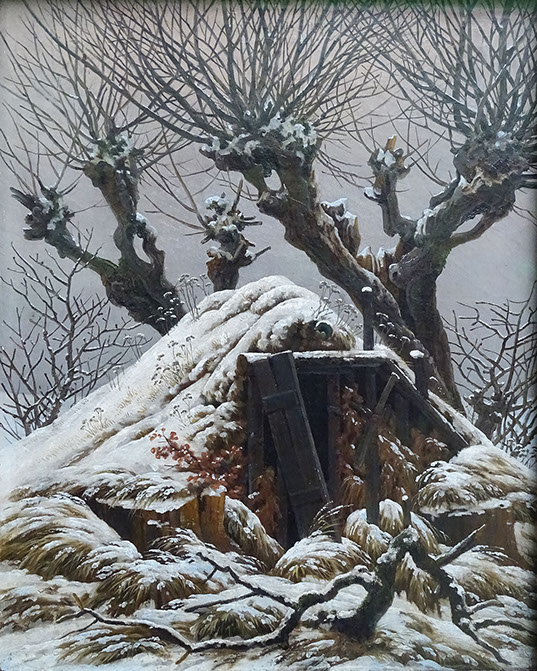 1827-Caspar David Friedrich (1774-1840). Verschneite Hütte, 1827. Alte Nationalgalerie Berlin.