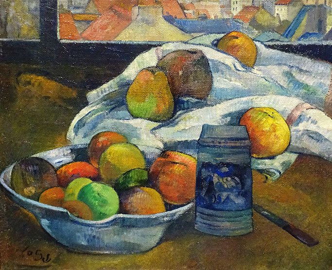 1890-Paul Gauguin (1848-1903). Bowl of Fruit and Tankard before a Window, 1890. National Gallery London.
