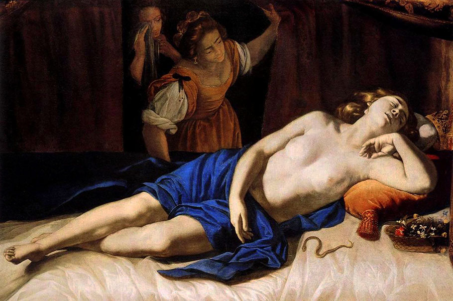 1633-Artemisia Gentileschi (1593-1654). Cleopatra, 1633-35. Private Collection Rome. WikiCommons.