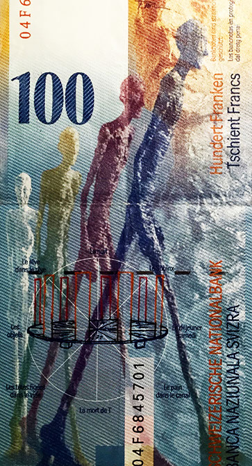 Grosse Ehre für Alberto Giacometti: Seine «hommes qui marchent» auf der 100-Franken-Note.