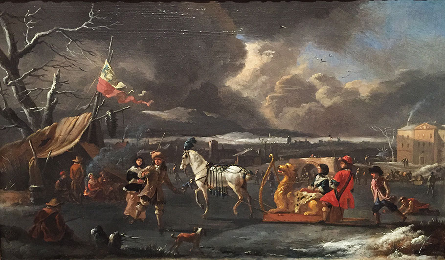 Thomas Wijck, Beverwiijk, ca. 1650. Winterszene mit nobler Gesellschaft.