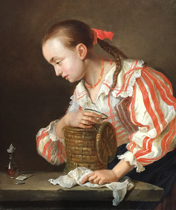 Jacob Toorenvliet, Leiden, 1677. Junge Frau betrachtet sorgenvoll ihr Urinfläschchen. Schwanger?