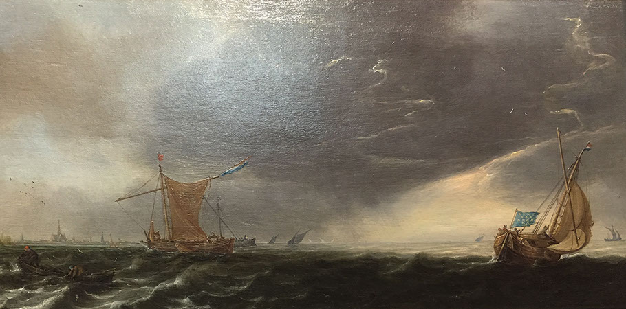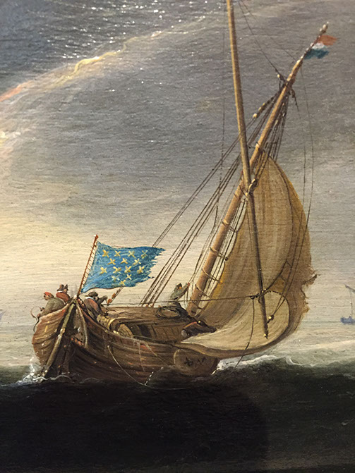 Justus de Verwer, Amsterdam, 1625-1689. Segelschiffe auf rauer See, 2. Hälfte 17. Jahrhundert. Detail.