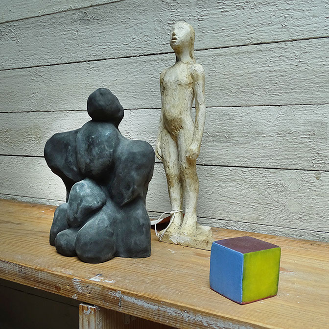 Loredana Sperini (1970). #2867, Keramik, 2018. Kubus Untitled, Wax, 2020. Frauenfigur Hermann Haller.