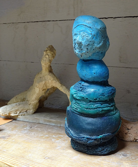Athene Galiciadis (1978). Gemälde Drei Gefässe und eine Zitrone, 2020. Skulptur Hermann Haller.