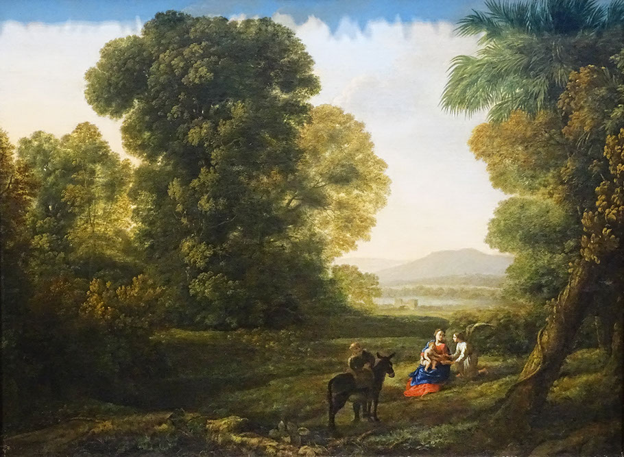 Claude Lorrain Gellée (1600-1682). Bewaldete Landschaft mit der Rast der Heiligen Familie, 1644.