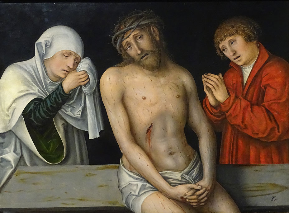 Lucas Cranach d.Ä. (1472-1553). Der Schmerzensmann zwischen Maria und Johannes, 1540.